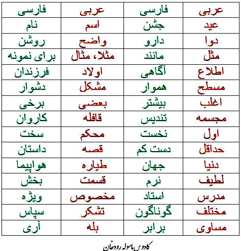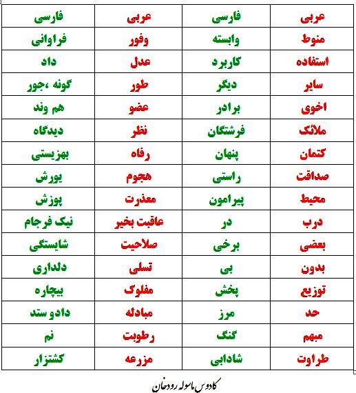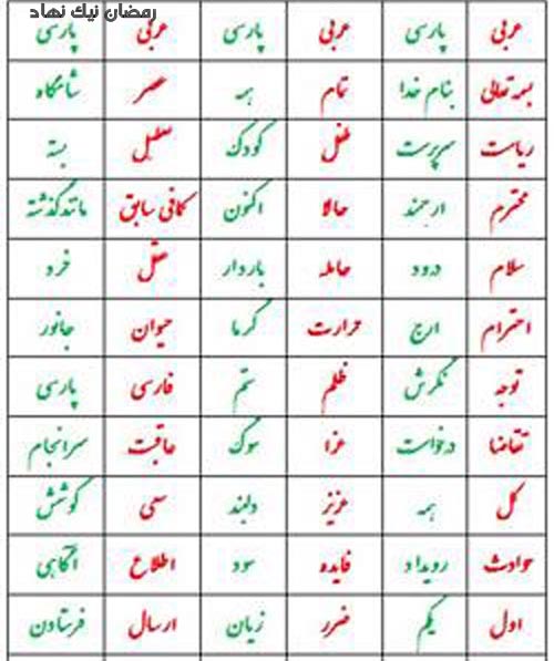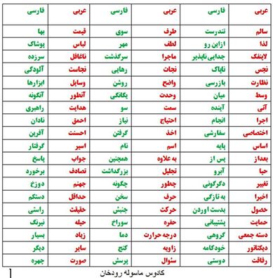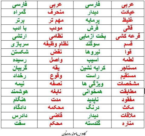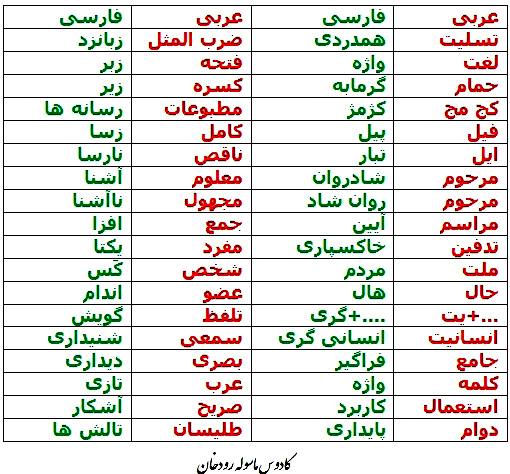 جایگزین لغات عربی با واژه های فارسی (زبان ملی )12