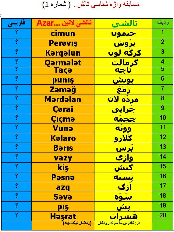 مسابقه واژه شناسی تالشی 1