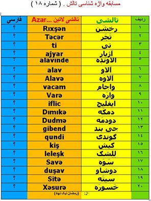 مسابقه واژه شناسی تالشی 18: