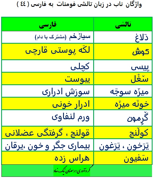 واژگان تالشی 44 ( نام بیماری های قدیمی به زبان تالشی 2 )